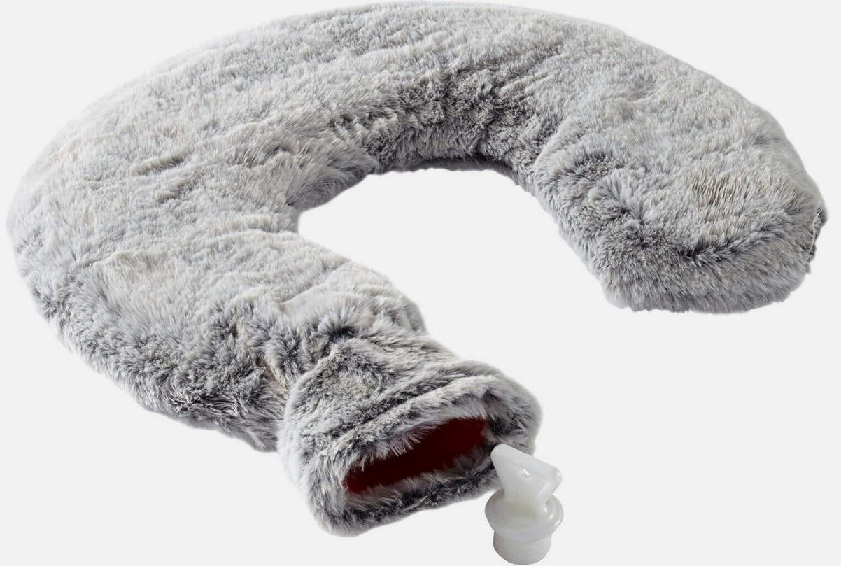 Wohltuende Wärme für Nacken und Schultern Geformt wie ein Nackenkissen Lässt sich einfach über die Schultern legen Kuschelweicher Bezug in Fell-Haptik zum Anschmiegen Mit Wasser befüllbar – großzügig breiter & auslaufsicherer Verschluss