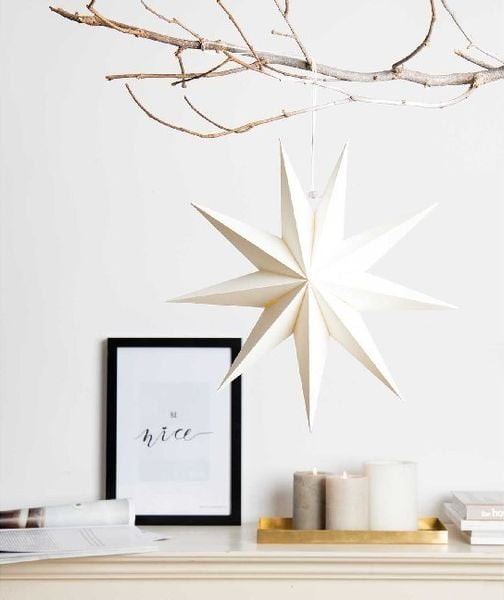 Mit dem handgemachten wiederverwendbaren Papierstern lässt sich in wenigen Schritten eine wunderschöne Weihnachtsdekoration erstellen. Der Stern verfügt über eine Kordel, die farblich zur jeweiligen Farbe des Sterns passt.