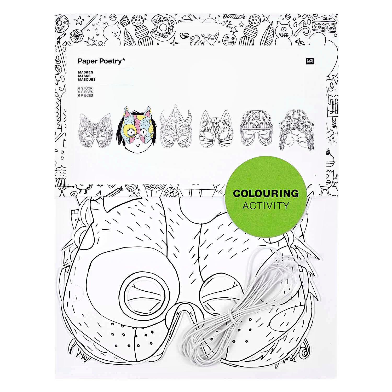 Spass am Gestalten und Maskieren mit den Pappmasken „Colouring Activity“, 6er-Pack