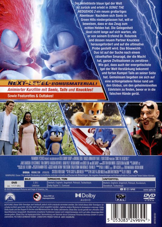 Der beliebteste blaue Igel der Welt ist zurück und erlebt in "Sonic the Hedehog 2" ein neues großartiges Abenteuer: Nachdem sich Sonic in Green Hills niedergelassen hat, will er beweisen, dass er das Zeug zum echten Helden hat. Die Gelegenheit lässt nicht lange auf sich warten, als er von seinem Erzfeind Dr. Robotnik und dessen neuem Partner Knuckles herausgefordert und auf die ultimative Probe gestellt wird. Das Bösewicht-Duo ist auf der Suche nach einem rätselhaften Smaragd, der die Macht hat, ganze Zivilisationen zu zerstören. Wie gut, dass auch der energetischste Igel der Welt Verstärkung bekommt und fortan Kumpel Tails an seiner Seite hat. Gemeinsam begeben sie sich auf eine actiongeladene Reise rund um den Globus, um den geheimnisvollen Edelstein zu finden, bevor er in die falschen Hände gerät.