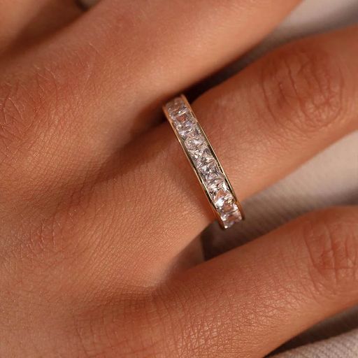 Wer sagt denn, dass man nur einen Ring fürs Leben braucht? Dieser brillant funkelnde Ring aus goldbeschichtetem Messing ist rundherum mit verführerisch glitzernden Zirkonia besetzt und die perfekte Ergänzung zu Ihren Schmuckstücken. Nehmen Sie den Trend Ring Stacking auf und tragen Sie Ihre Lieblingsringe ergänzt mit diesem wundervoll funkelnden Highlight lässig übereinander. In die glänzenden Ringschienen aus 14k-goldbeschichtetem Messing sind dicht an dicht edel glitzernde Zirkonia im kantigen Schliff aneinandergefügt und sorgen mit ihrem strahlenden Feuer überall für Bewunderung.
