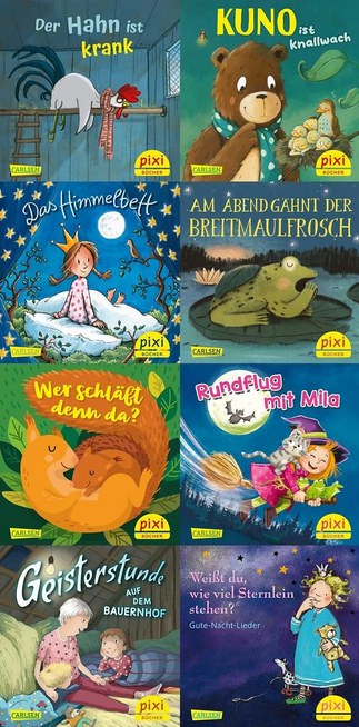 Zusammen mit Pixi einschlafen und zur Ruhe kommen: Diese Pixi-Serie erzählt, wie kleine und große Tiere schlafen und was kleine Hexen oder Bären machen, wenn sie noch gar nicht müde sind. Huch, was raschelt denn bei der Übernachtung auf dem Heuboden? Pixi erzählt für jedes Kind eine passende Gutenachtgeschichte und begleitet die Kleinen warmherzig ins Reich der Träume!