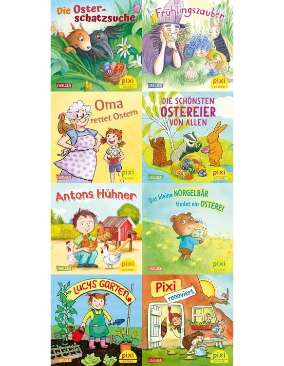 Erlebe den Frühling mit Pixi! Wenn die ersten Blumen blühen, ist es Zeit für den Frühjahrsputz in Haus und Garten. Jetzt werden die Hühner wieder munter und der Osterhase will schon bunte Eier verstecken. Natürlich läuft nicht immer alles nach Plan, genauso wenig wie beim Osterfest zu Hause. Ob Oma das noch retten kann? Lass dich überraschen in diesen acht Frühlings- und Ostergeschichten! In der Pixi-Serie "Der Frühling ist da bei Pixi" sind folgende Bücher enthalten: Die Oster-Schatzsuche Frühlingszauber Oma rettet Ostern Die schönsten Ostereier von allen Antons Hühner Der kleine Nörgelbär findet ein Osterei Lucys Garten Pixi renoviert