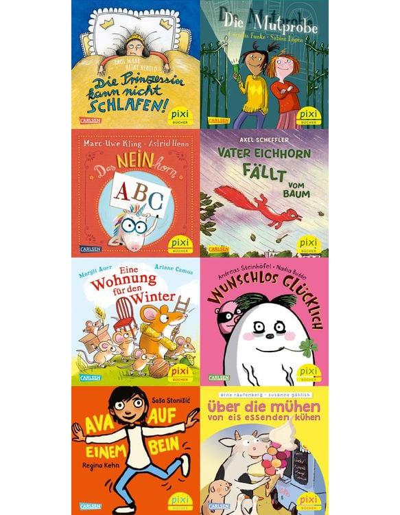 Acht Größen des Kinder- und Jugendbuchs haben Pixi zum 70-jährigen Jubiläum eine Geschichte geschrieben – und acht namhafte Bilderbuch-Illustrator*innen haben sie bebildert. Darunter sind Erfolgsteams wie Marc-Uwe Kling und Astrid Henn vom „Neinhorn“ oder Saša Stanišić und Regina Kehn mit einer rührenden, nachdenklichen Geschichte. Beliebte Klassiker wie Paul Maar und Cornelia Funke treffen auf moderne Kinderbuchstars wie Andreas Steinhöfel und Margit Auer. Ein Fest für alle Pixi-Fans! In der Pixi-Serie "Beliebte Autor*innen gratulieren Pixi" sind folgende Bücher enthalten: Paul Maar: Die Prinzessin kann nicht schlafen Cornelia Funke: Die Mutprobe Marc-Uwe Kling: Das Neinhorn-ABC Axel Scheffler: Vater Eichhorn fällt vom Baum Margit Auer: Eine Wohnung für den Winter Andreas Steinhöfel: Wunschlos glücklich Saša Stanišić: Ava auf einem Bein Arne Rautenberg: über die mühen von eisessenden kühen
