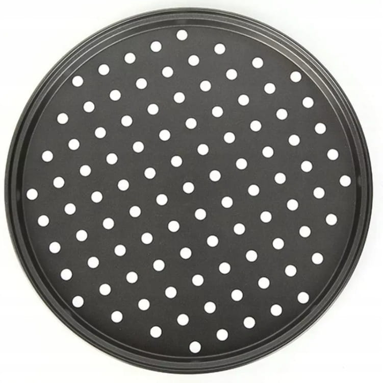 Das perforierte Pizzablech mit Antihaftbeschichtung garantiert köstliche Pizzen mit knusprigem Boden.