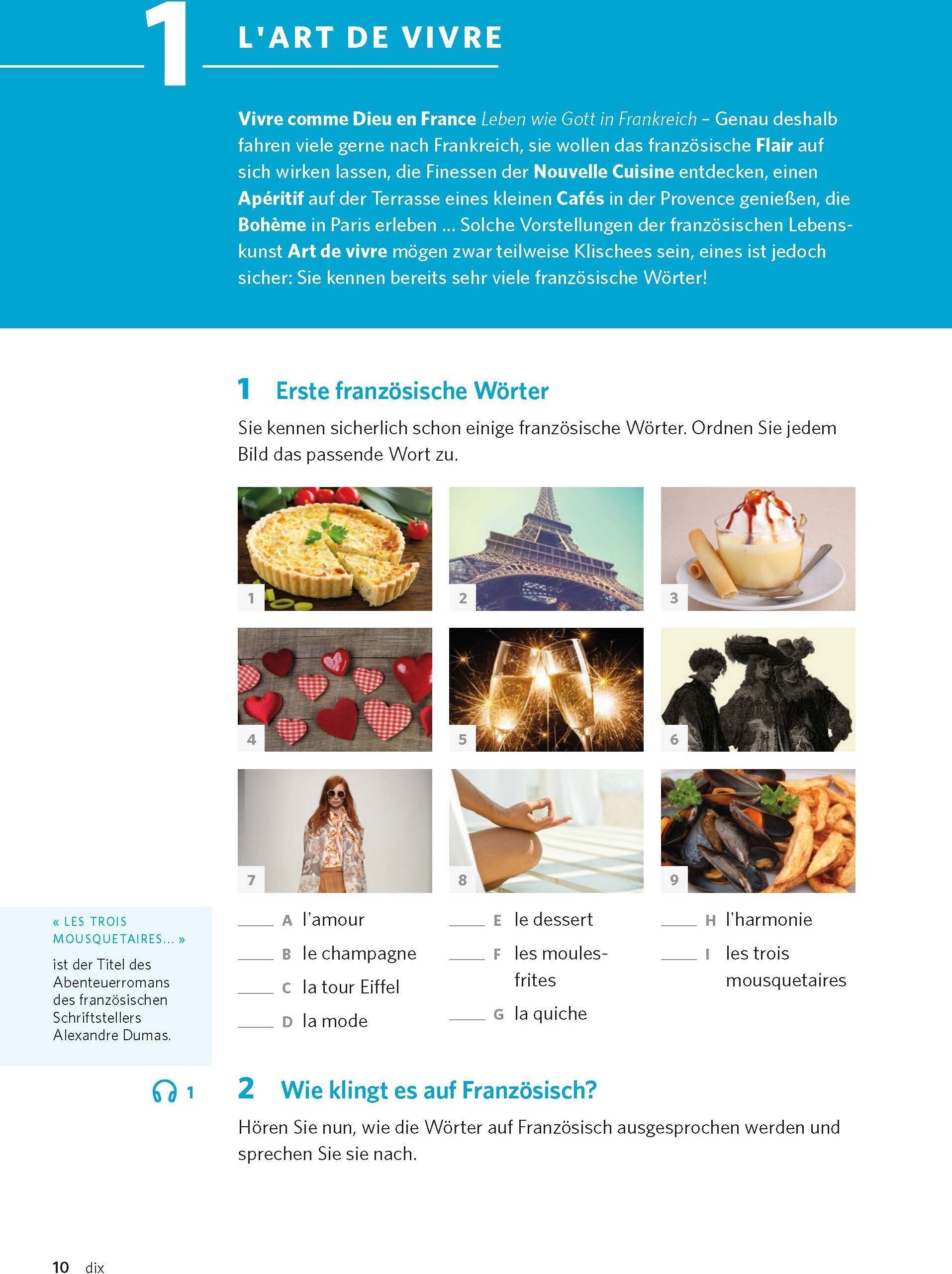 , um die französische Aussprache durch Hören und Mitsprechen zu erlernen. Es folgen