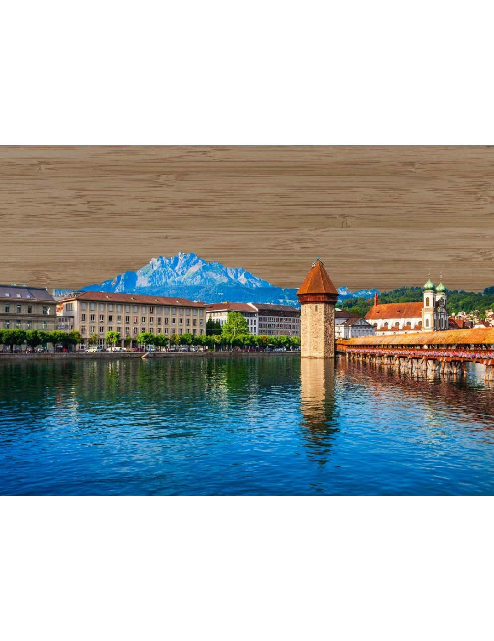 Postkarte. Bambus Swiss Colored - Luzern Kapellbrücke