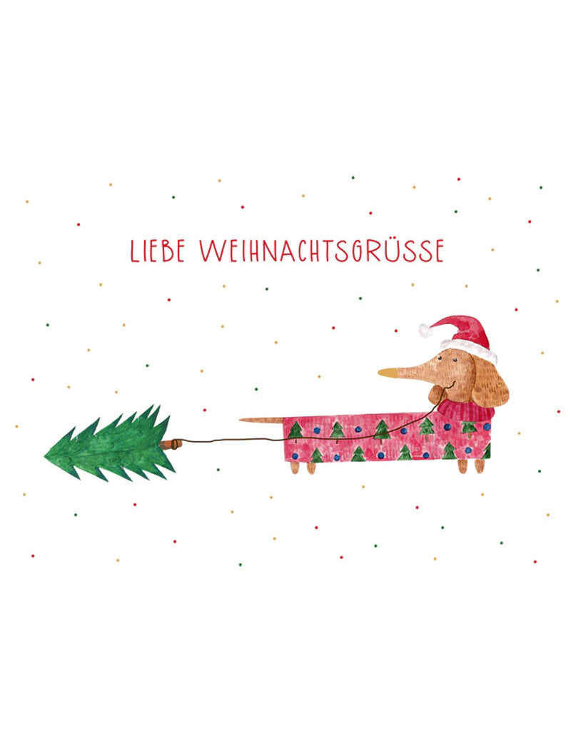 Postkarte. Green Karma X-MAS - Weihnachts-Dackel