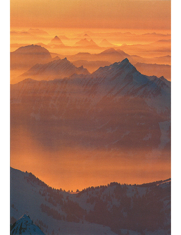 Postkarte Swiss Image hoch Alpenkette im Abendrot
