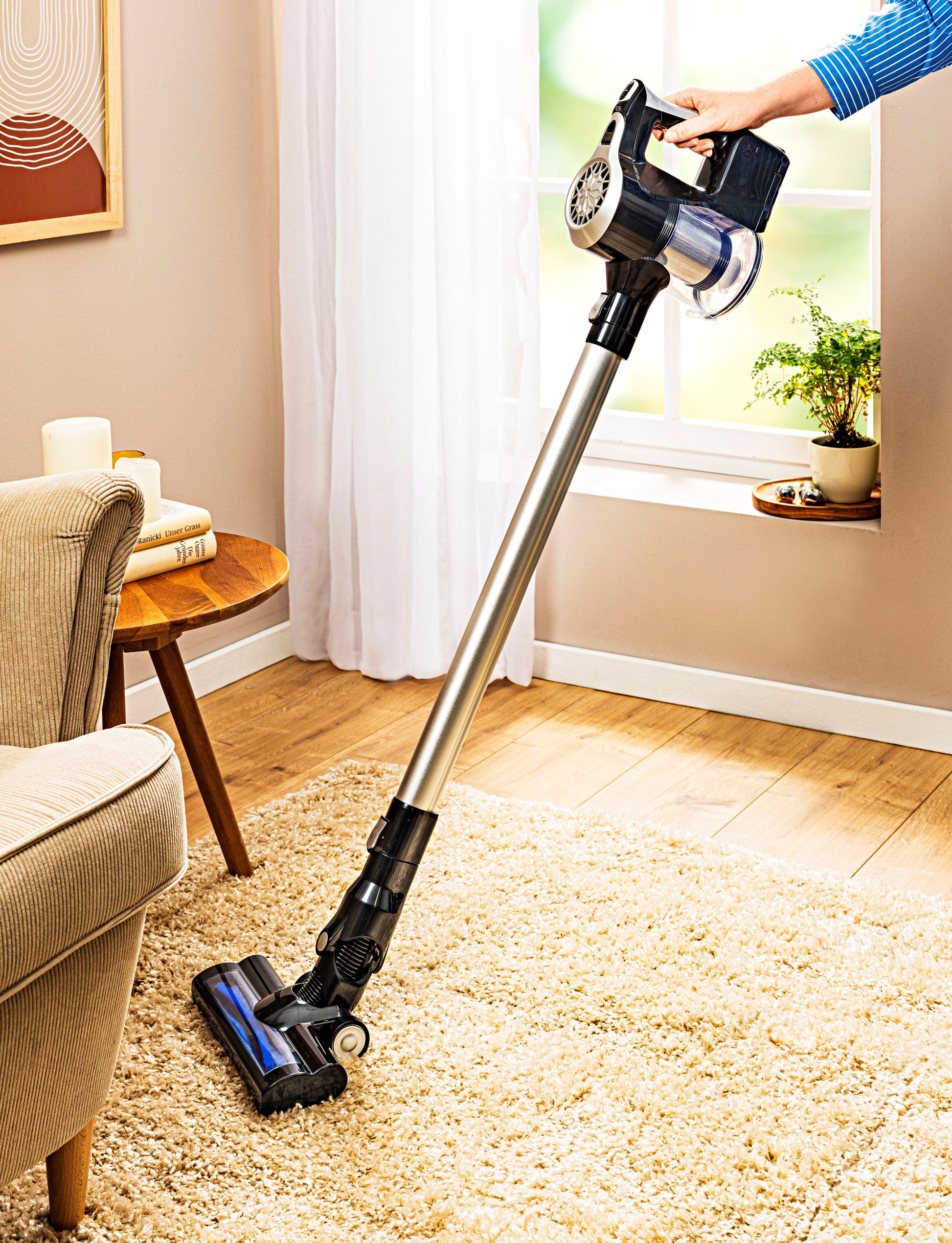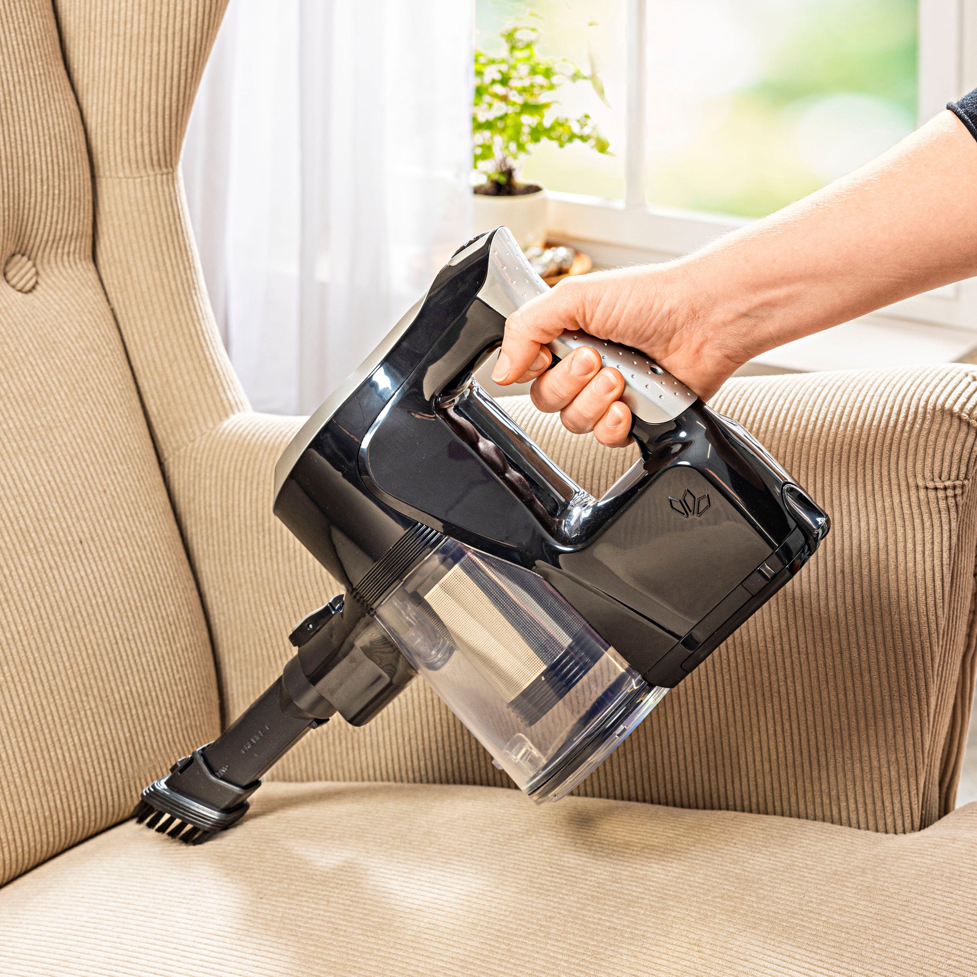 Besonders praktisch: Der Staubsauger lässt sich im Nu als Handstaubsauger verwenden - ideal für die bequeme Sofareinigung, zum Entfernen von Tierhaaren oder auch um das Auto bequem vor der Haustür auszusaugen.