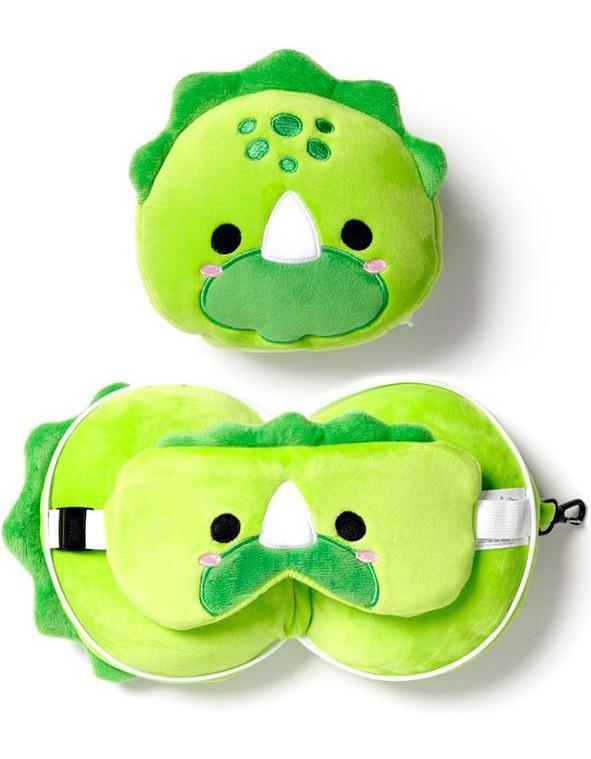 Relaxeazzz Plüsch Dinosaurier Reisekissen & Augenmaske.