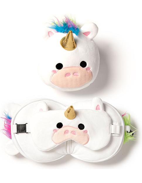 Relaxeazzz Plüsch Einhorn Reisekissen & Augenmaske.