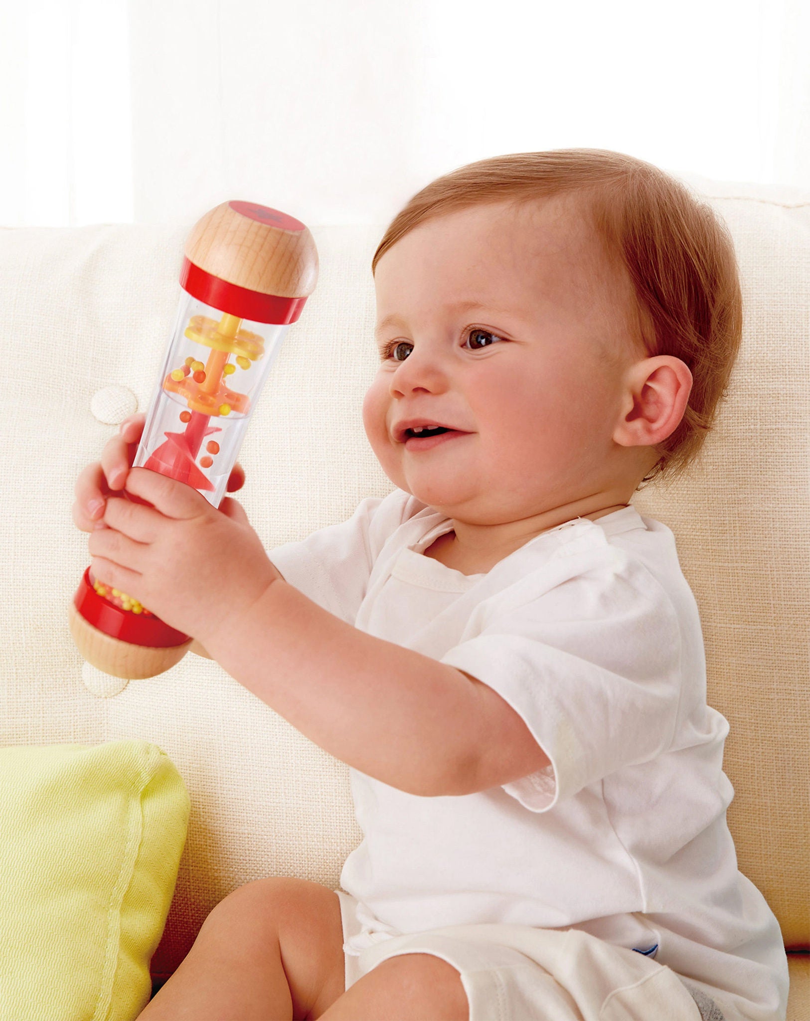 Ein Spielzeug, das immer wieder neugierig macht und lange Freude bereitet – bestellen Sie die Rassel REGENMACHER in rot von Hape gleich hier online!