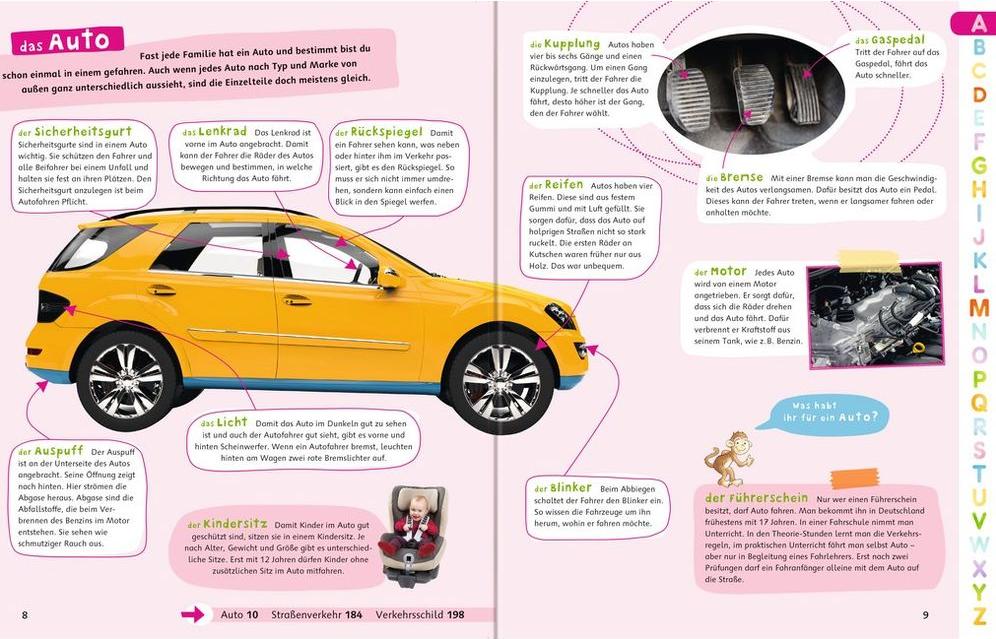 Von A wie Arzt bis Z wie Zoo - dieses erste Lexikon liefert verlässliche Antworten auf alle Fragen, die sich Kindergartenkinder und Leseanfänger stellen. In alphabetischer Reihenfolge werden über 1000 Stichwörter mithilfe zahlreicher Fotos und Illustrationen erklärt. Kurze altersgerechte Sachtexte, die Abc-Leiste und das klare Farbsystem der Buchstaben machen die Lexikonnutzung schon für Leseanfänger zum Kinderspiel.