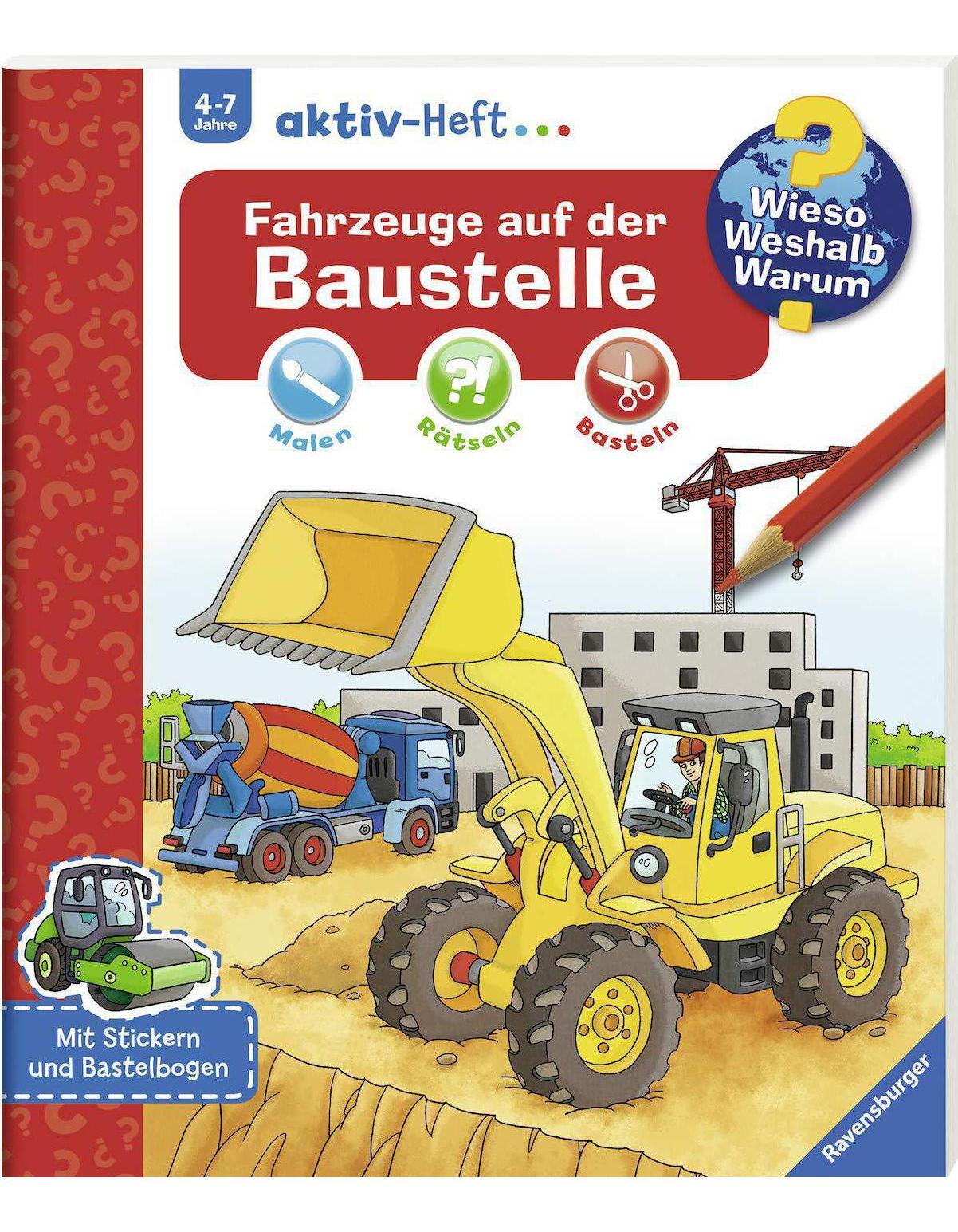 Was können Bagger? Wo hilft ein Kran? Welche Fahrzeuge bauen Häuser? Große Ausmalbilder, knifflige Rätsel und attraktive Bastel- und Spielideen laden Kinder zum aktiven Entdecken ein. Mit kurzen Wissenstexten, über 30 Stickern und einem Bastelbogen.