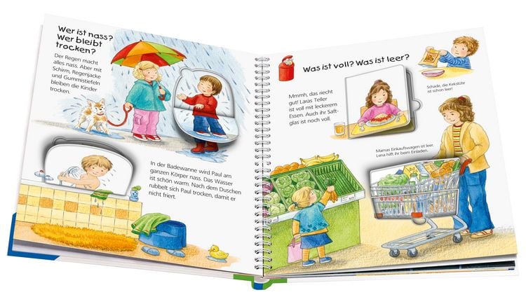 Ich bin klein und du bist groß. Der Teller ist voll, das Glas ist leer. Am Tag ist es hell, in der Nacht ist es dunkel … Die Welt ist voller Gegensätze und schon die Kleinen sind eifrig dabei, diese zu benennen. Das ist nicht immer einfach, doch mithilfe von anschaulichen Klappen und Suchbildern erschließen sich Gegensätze ganz spielerisch und prägen sich ein. Auch die Grundformen – Kreis, Quadrat und Dreieck – lernen Kinder im Buch anhand von Formstanzen zum Fühlen kennen. Wieso? Weshalb? Warum? junior Die Sachbuchreihe für Kinder von 2-4 Jahren Jeden Tag entdecken Kinder etwas Neues – und haben viele Fragen. Wann kommt die Feuerwehr? Was machen die Tiere im Winter? Warum muss ich Zähne putzen? Die beliebte Sachbuchreihe Wieso? Weshalb? Warum? junior beantwortet die Fragen der Kinder auf Augenhöhe. Sie beleuchtet unterschiedlichste Themen aus ihrer Alltags- und Interessenswelt altersgerecht und mit viel Liebe zum Detail. Die Reihe ist speziell auf kleine Hände und die Bedürfnisse der Kleinsten angepasst. Klare und liebevolle Bilder, kurze Sachtexte sowie handliche Klappen, die Bewegungen veranschaulichen und überraschende und lustige Einblicke gewähren, ermöglichen Kindern, sich ihre Themen selbst zu erschließen. Der Spaß am eigenhändigen Entdecken, die liebevolle Umsetzung und die hochwertige Ausstattung garantieren langanhaltende Freude an jedem Buch.