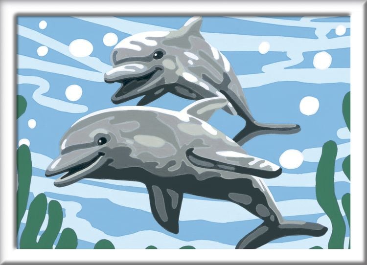 Farbige Motivlinien: Größerer Malspaß & ein schöneres Ergebnis!Dank der farbigen Motivlinien, können die Kinder das ganze Motiv Freundliche Delfine und die Farben schneller erkennen. Der Pinsel hat eine gute Führung und so entsteht nach und nach ein perfektes Bild.Die schönen Motive zum Ausmalen sind eine tolle Geschenkidee für Kinder ab 7 Jahren und eine schöne Dekoration für das Kinderzimmer. In diesem Malset sind bereits 10 fertig gemischte Acrylfarben enthalten. Auspacken und Losmalen: das Malset ist geeignet für Künstler ab 7 Jahren Die farbigen Motivlinien machen kleinere Fehler unsichtbar, erleichtern das Ausmalen und sorgen so für ein schöneres Endergebnis Großer Malspaß mit den Lieblingsmotiven der Kinder: Die Delfine bringen Kinderaugen zum Leuchten und sind somit das ideale Geschenk für kleine und große Künstler Dank des mitgelieferten Rahmens eignet sich das Malen nach Zahlen auch wunderbar als Dekoration im eigenen Kinderzimmer Das Malset enthält 10 kindgerechte Acrylfarben in wiederverschließbaren und nummerierten Näpfchen, eine stabile Maltafel im Format 13,00 cm x 18,00 cm, einen passenden Rahmen und einen Pinsel. Die hochwertigen Acrylfarben trocknen schnell, sind auf Wasserbasis, geruchsneutral und benötigen keinen Pinselreiniger Die Ravensburger Gruppe ist ein Zusammenschluss von drei global agierenden Unternehmen: Die für Spiele, Puzzles und Bücher bekannte Ravensburger AG mit Sitz in Deutschland, Spielwarenhersteller BRIO AB in Schweden und Spieleverlag ThinkFun Inc. in den USA. Ravensburger übernahm 2015 BRIO und 2017 ThinkFun, denn gemeinsam kann sich die Gruppe besser im internationalen Spielwarenmarkt behaupten. Zumal die Produktphilosophie der drei Firmen ähnlich ist: Premium-Angebote entwickeln, die Kindern und Familien sinnvolle Unterhaltung bieten und im Markt den besten Ruf genießen.Die Ravensburger Gruppe sieht sich im besten Sinne des Wortes als Unternehmensfamilie, jedes Unternehmen individuell in seiner Prägung und seinen Stärken, alle jedoch verbunden durch eine gemeinsame Mission: Wir inspirieren Menschen zu entdecken, was wirklich wichtig ist.