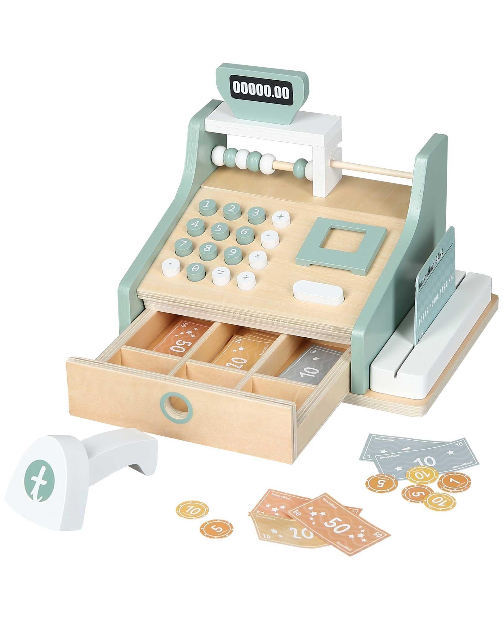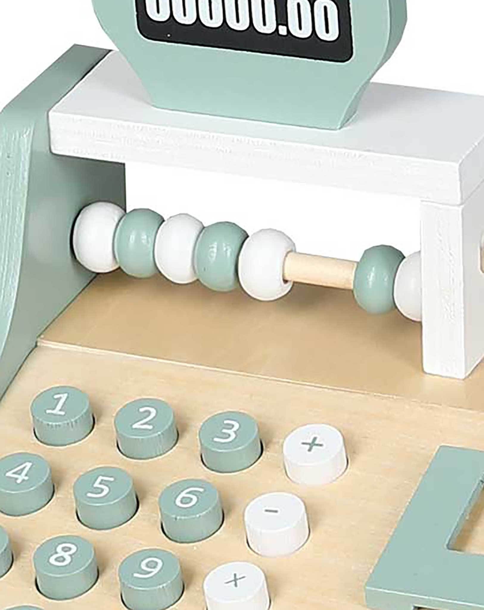 Darüber hinaus ist die Kasse mit Zählperlen ausgestattet, die spielerisch das mathematische Verständnis fördern. Diese interaktive Ergänzung ermöglicht es den kleinen Kaufleuten, spielerisch den Umgang mit Zahlen zu trainieren und erste Rechenübungen zu absolvieren.