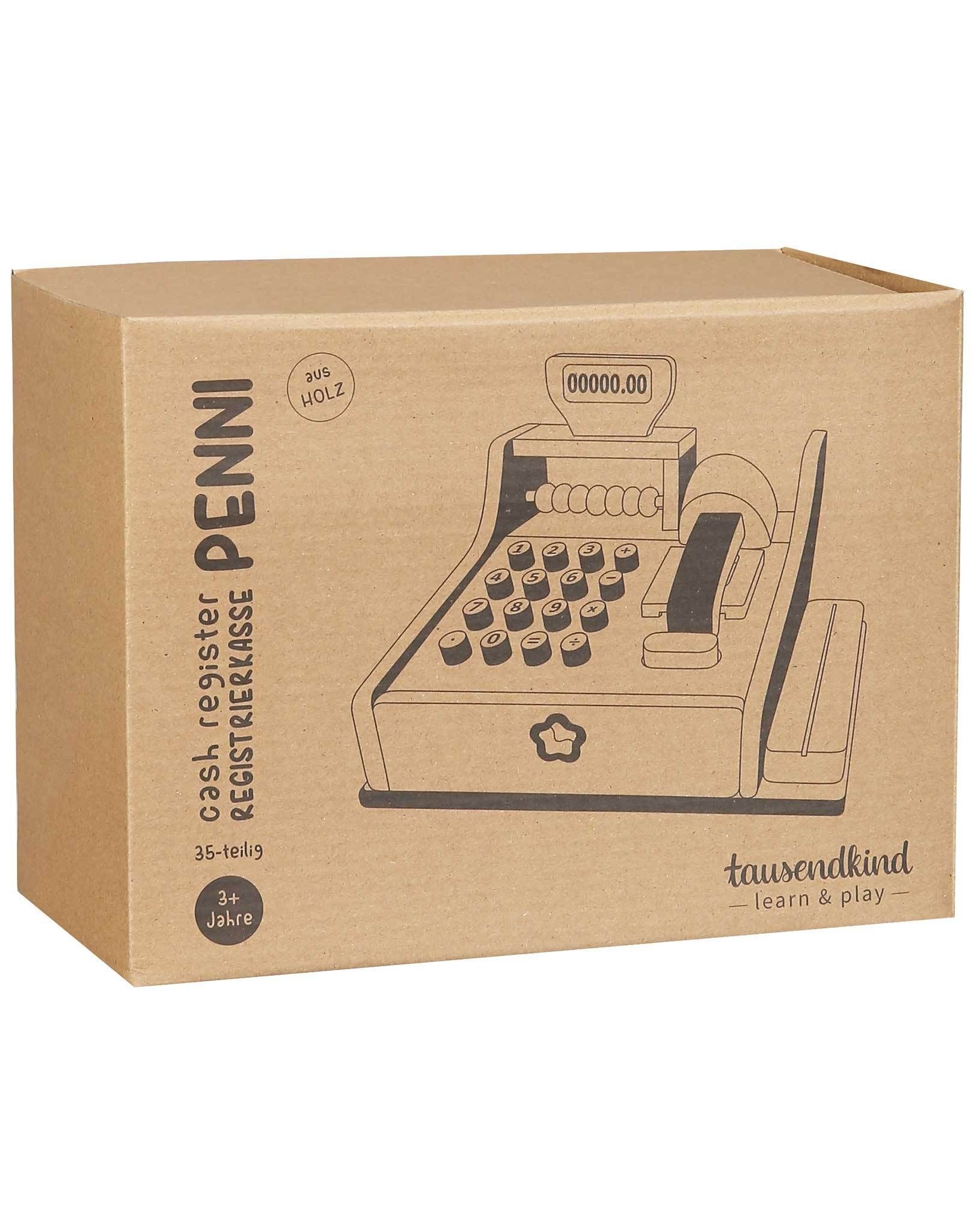Die tausendkind learn & play Registrierkasse "PENNI" aus Holz ist ein äusserst facettenreiches Lernspielzeug, das speziell für kleine Nachwuchskaufleute ab 3 Jahren konzipiert wurde.
