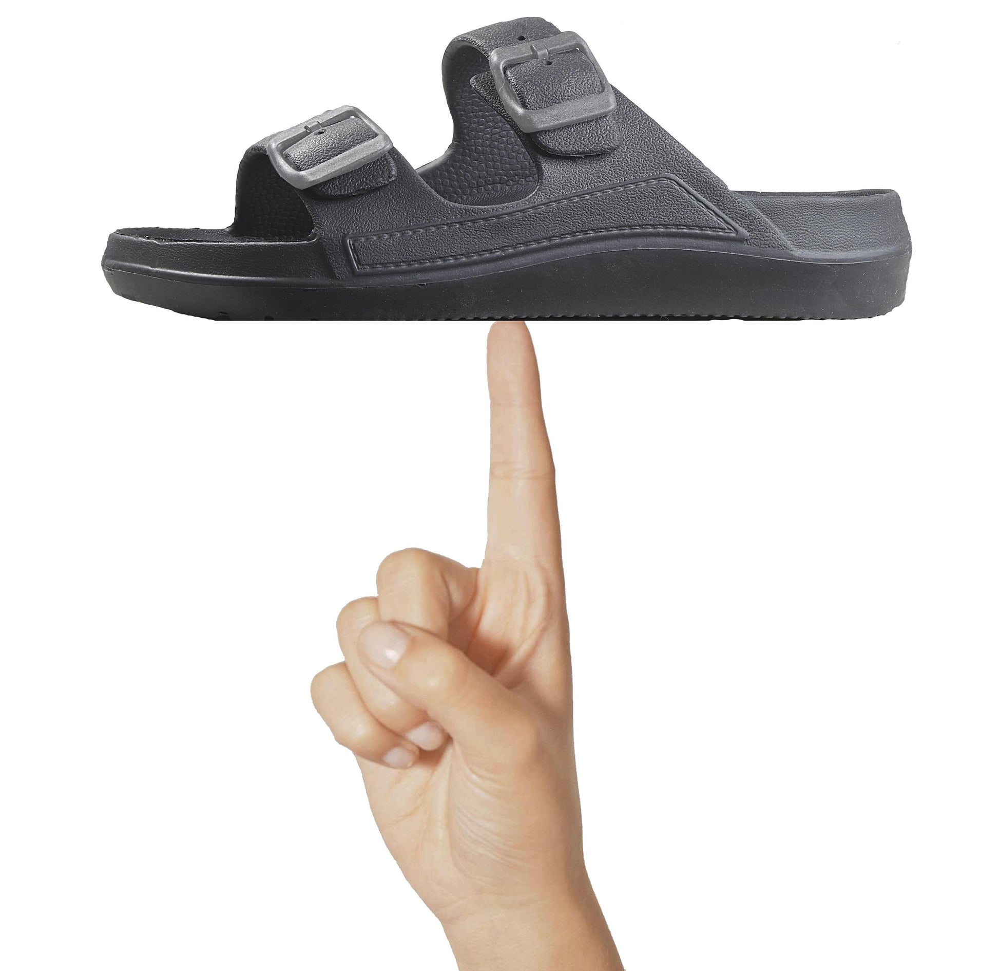 Verwöhnen Sie Ihre Füsse mit der Relax Vital Wolken Sandale, schwarz. Sie sind ultra weich, flexibel und bieten gleichzeitig sehr guten Halt. Dank individuell verstellbarer Schnallen kann eine perfekte Passform eingestellt werden. Die dicke Sohle mit Profil gibt guten Halt und verhindert Ausrutschen. Zudem wirkt sie wie ein Stossdämpfer für Ihre Gelenke und ist gleichzeitig wärme- und kälteisolierend, sowie geräuscharm.