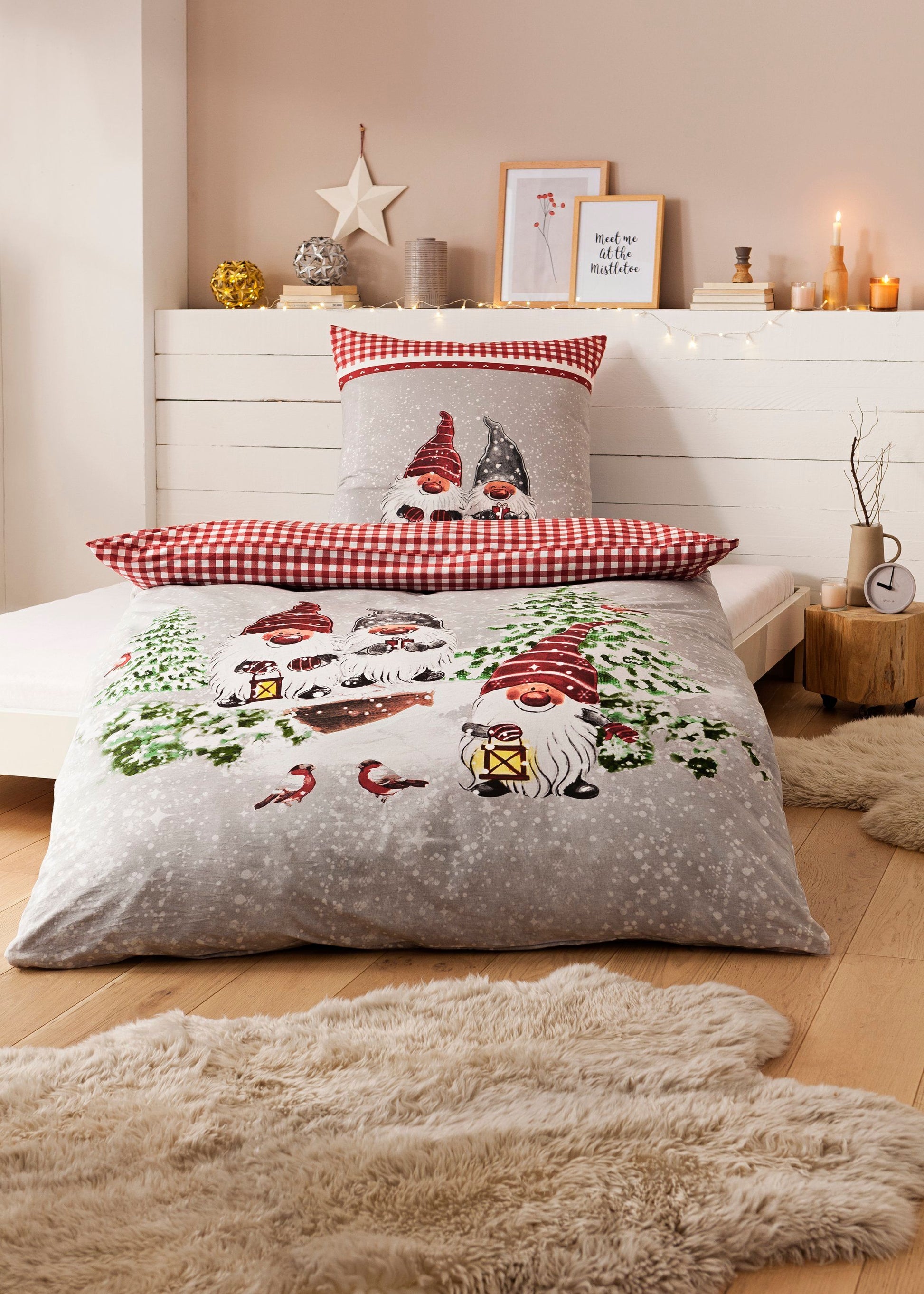 - Bettwäsche mit niedlichem Winter-Wichtel-Motiv