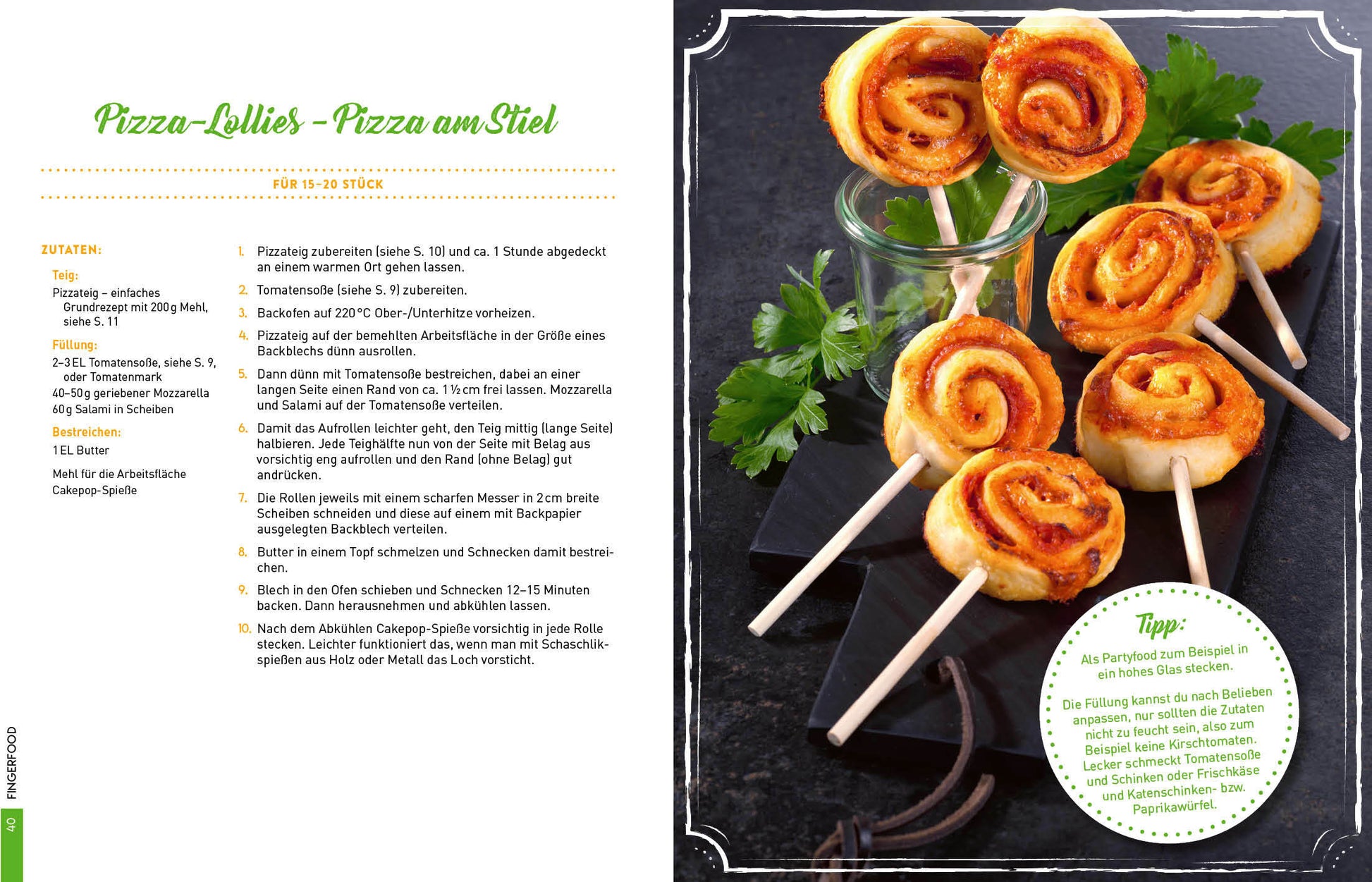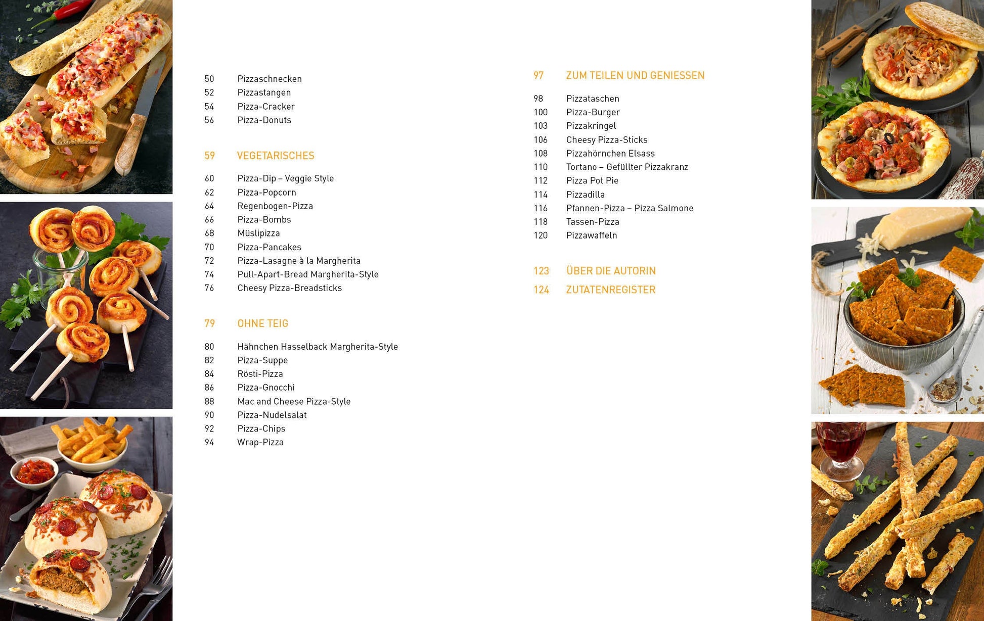 Frischer Hefeteig, würzige Tomatensoße, italienische Kräuter, extra viel Käse und herzhafter Belag nach Lust und Laune, so lieben wir die klassische Pizza. Doch warum nicht den Geschmack mal anders verpacken? Entweder in verschiedensten Formen, wie die schmackhaft gefüllte Pizzasonne, als Muffins, herzhafter Kuchen, Brezen oder Burger, oder ganz ohne Teig als Pizzabällchen oder vegetarischer Pizza-Dip. Wie wäre es mit einer Pizzatorte zum Geburtstag oder Pizza-Pot-Pie und Ciabatta-Pizzabrot für einen gemütlichen Filmabend zu Hause? Fingerfood und kleine Snacks wie Pizzaschnecken, -Cracker, -Stangen oder -Donuts sind ideal für jede Party. Lass dich von den überraschenden Rezepten inspirieren und probier mal etwas Neues!
