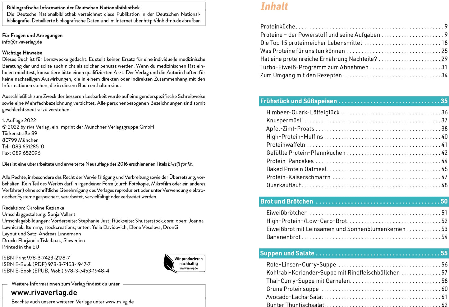 Eine optimale Eiweißversorgung ist wichtig für Sportler und für alle, die abnehmen wollen. Sie unterstützt dich dabei, Muskelmasse aufzubauen, Körperfett zu reduzieren und lange satt zu bleiben. Damit du den ganzen Tag über optimal mit genügend Protein versorgt bist, bietet dir dieses Buch mehr als 60 eiweißreiche Rezeptideen, zum Beispiel Wraps mit Hähnchen-Salat-Füllung, Protein-Piccolinis, einen nährstoffreichen Quarkauflauf, gesunde Brownies und auch eine Vielzahl leckerer Eiweiß-Shakes. Die High-Protein-Mahlzeiten sind schnell zubereitet, weshalb du sie auch ganz einfach in deinen Alltag integrieren kannst.