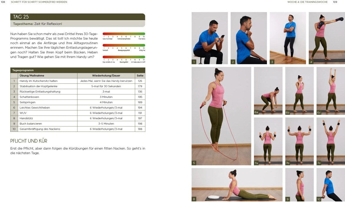 Schluss mit Nackenschmerzen!Ihre Schultern sind verspannt, Ihr Nacken schmerzt, Ihr ganzer Körper fühlt sich steif an und Ihre Beweglichkeit ist eingeschränkt? Mit dem 30-Tage-Programm von Gabriele Kiesling können Sie aktiv dagegen vorgehen! Die erfahrene Physiotherapeutin gibt Ihnen einfache, aber effektive Übungspläne für zu Hause an die Hand, mit denen Sie sich Schritt für Schritt von Nacken- und Schulterschmerzen befreien können.