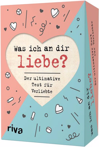 »Wenn du einen bestimmten Moment unserer Beziehung noch einmal erleben könntest, welcher wäre das?« »Wie stehst du zu öffentlichen Liebeserklärungen?« Wie gut kennt ihr euch wirklich? Und wie gut passt ihr zusammen? Durch die 128 abwechslungsreichen und liebevollen Fragen in diesem Kartenspiel erfahrt ihr viel Neues über euren Partner und lernt einander so noch besser kennen. Das Spiel zeigt außerdem, wo eure Stärken als Paar liegen und woran ihr eventuell noch arbeiten könnt. Der ultimative Liebesbeweis und das perfekte für alle Frischverliebten und Langzeitpaare. Mehr Informationen und weitere tolle Produkte zum Bestseller »Was ich an dir liebe« von Alexandra Reinwarth gibt es unter: www.was-ich-an-dir-liebe.de.