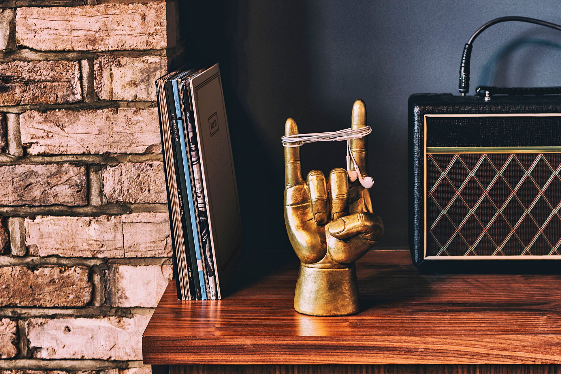 Diese goldene Hand in typischer Rocker-Pose verschafft Kopfhörern oder auch dem Gaming-Headset einen sicheren Ehrenplatz. Hier sind sie stilvoll aufbewahrt und zugleich passend in Szene gesetzt. Kabelgewirr bleibt aus und zudem sind sie hier immer gleich auffindbar und Sie ersparen sich das Suchen. Ideal fürs Regal, für den Schreibtisch oder den Gaming-Bereich.