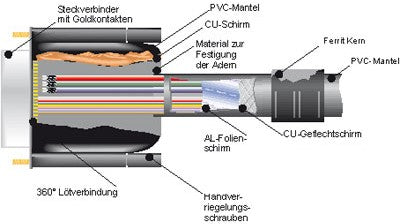 - Doppelt geschirmtes Kabel (Geflecht und Folienschirm)