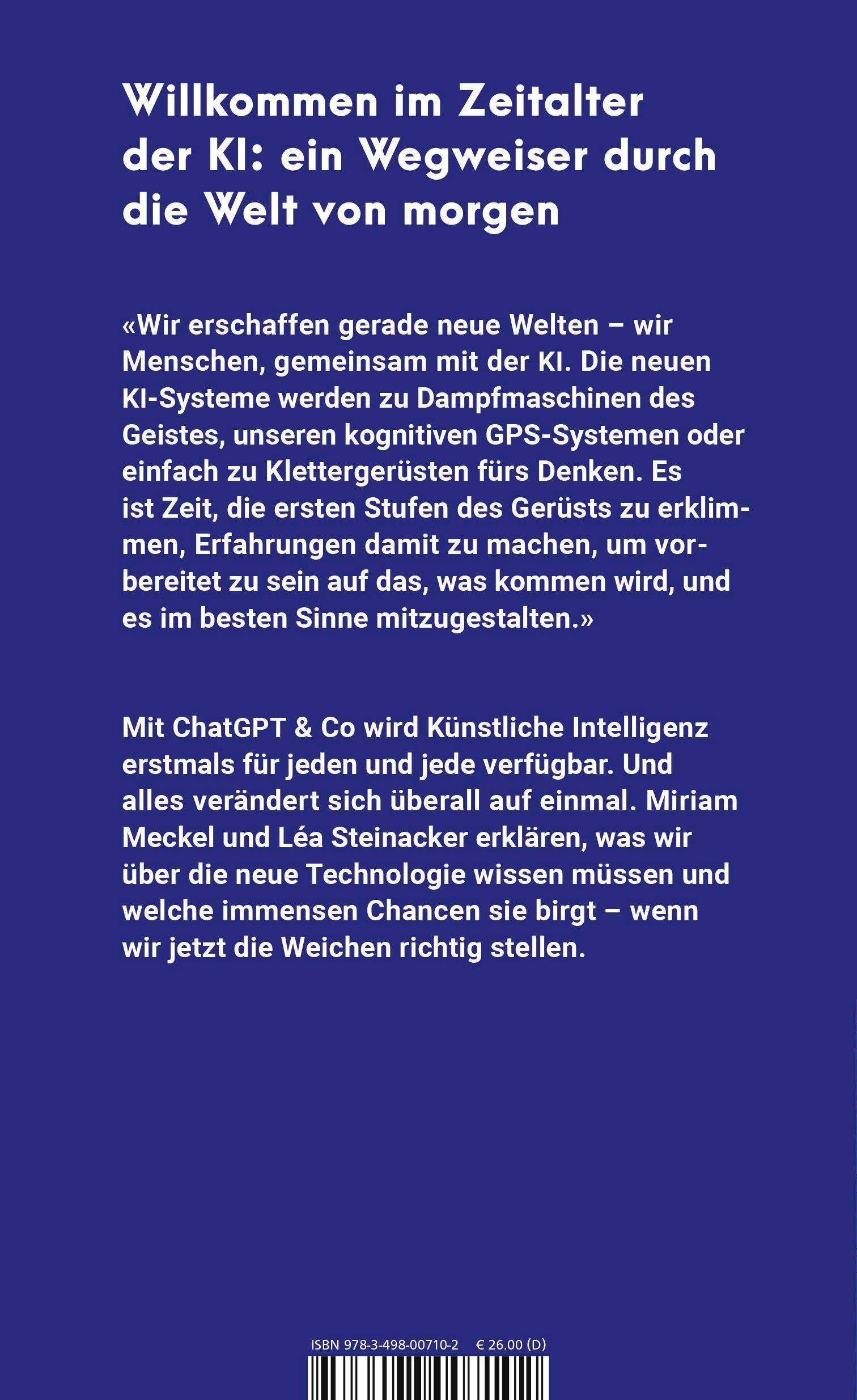 Miriam Meckel und Léa Steinacker zeigen die Chancen auf, die der Schritt über diese Schwelle birgt. Wir müssen nicht fürchten, als Menschen abgeschafft zu werden, denn: Alles, was die KI tut, geht zurück auf die Art und Weise, wie wir mit ihr umgehen. Das heißt aber auch: Wir stehen genau jetzt vor der Aufgabe, ihre Entwicklung in die richtigen Bahnen zu lenken. Doch wie gelingt das, und wo lauern Risiken, unerwünschte Nebeneffekte, ethische Dilemmata - ob in der Arbeitswelt, in der Wirtschaft, in den menschlichen Beziehungen oder im Alltag? Welche Fragen klären wir besser heute als morgen, sei es im Umgang mit selbstfahrenden Autos, virtuellen medizinischen Assistenten oder automatisierten Fake News?