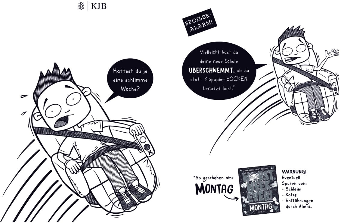 auf jeder Seite eignen sich hervorragend für junge Leser*innen. Mit Worst Week Ever werden auch Jungs