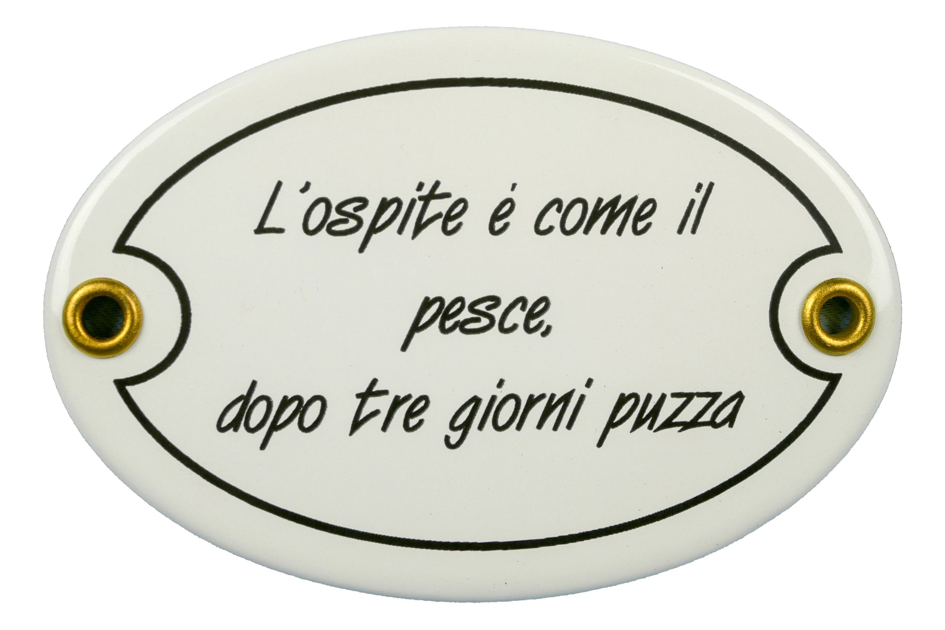 Schild 'L'ospite è come il pesce'