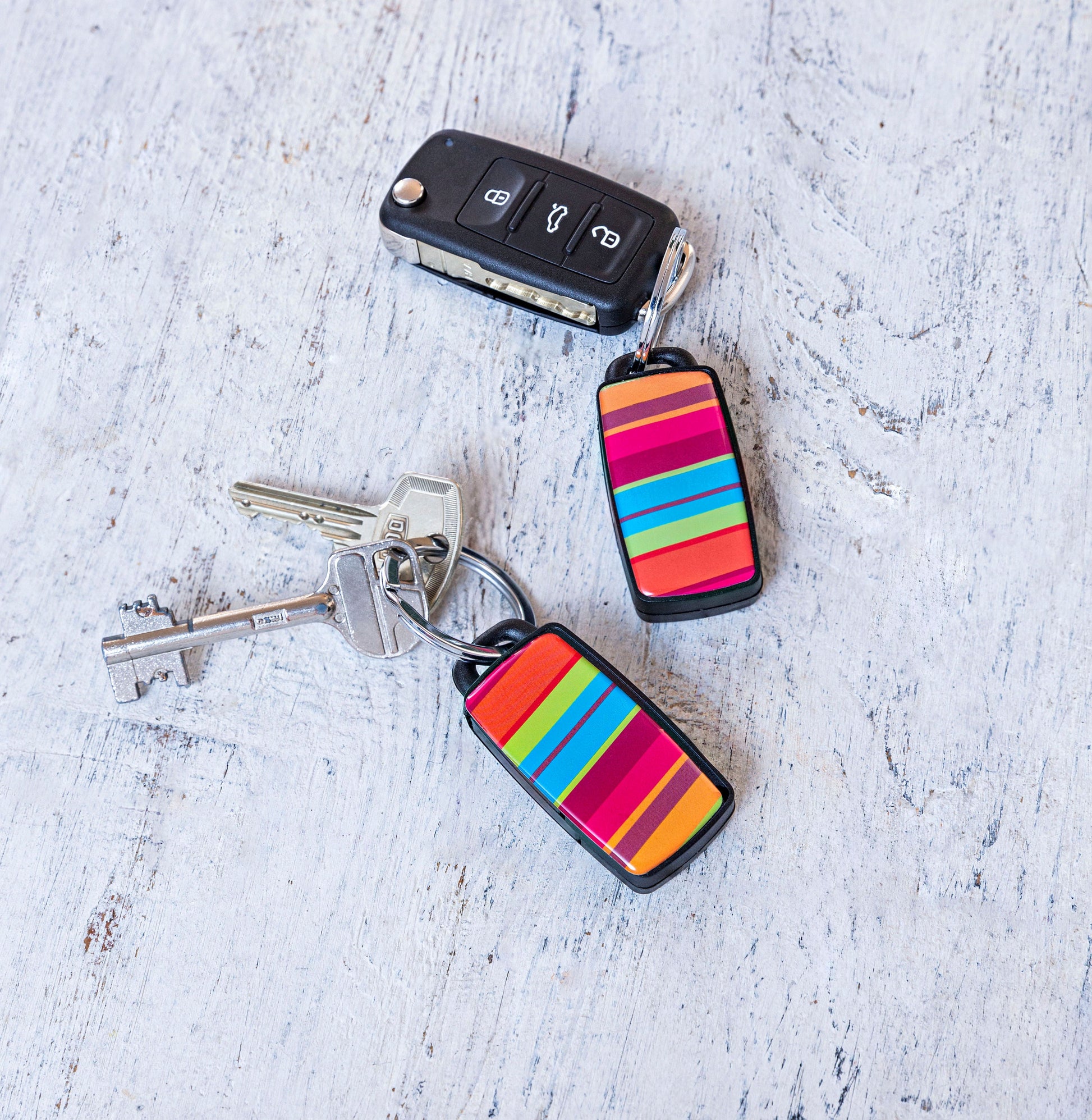 Klein und handlich passen diese an einzelne Schlüssel oder den Schlüsselbund.