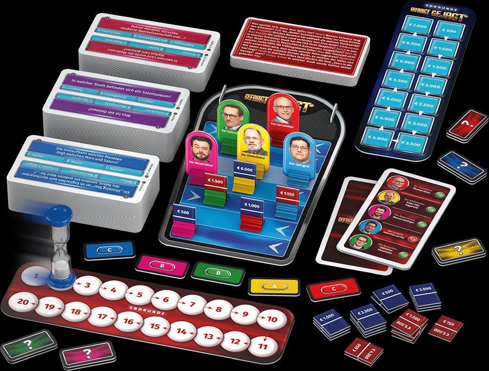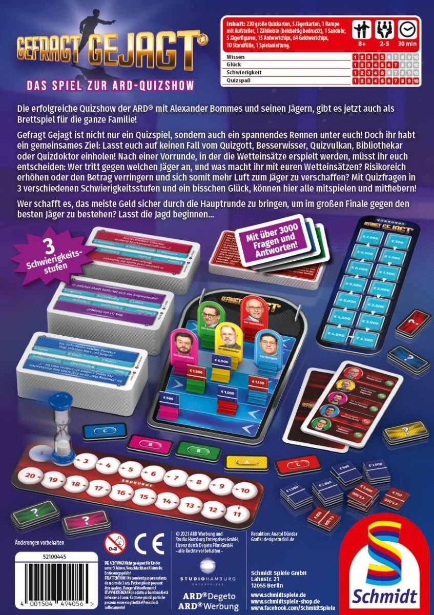 Gefragt Gejagt ist nicht nur ein Quizspiel, sondern ein spannendes Rennen unter euch. Nach einer Vorrunde, in der die Wetteinsätze erspielt werden, müsst ihr euch entscheiden: Wer tritt gegen welchen Jäger an, und was macht ihr mit euren Wetteinsätzen? Mit Quizfragen in 3 verschiedenen Schwierigkeitsstufen und ein bisschen Glück, können hier alle mitspielen und mitfiebern. Wer schafft es, das meiste Geld sicher durch die Hauptrunde zu bringen, um im grossen Finale gegen den besten Jäger zu bestehen? Lasst die Jagd beginnen. Wie in der erfolgreichen Quizshow der ARD tretet ihr gegen die gefürchteten Jäger an. Zunächst erspielt ihr in der Vorrunde euren Wetteinsatz, welchen ihr dann in der Hauptrunde - mit den Jägern im Nacken - sicher über die Rampe nach Hause zu bringen versucht. Wer sich den höchsten Betrag erspielen konnte, muss diesen, im grossen Finale der Endrunde gegen die Jäger verteidigen. Die Jagd beginnt. Schaffen es die Jäger, deinen Standfuss auf der Zählleiste innerhalb der 2 Minuten einzuholen, hast du leider verloren. Schaffen es die Jäger hingegen nicht, gewinnst du Gefragt Gejagt.