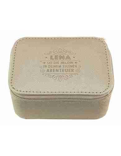Das wundervolle Schmuckdöschen ist für die Reise oder auch zum Aufbewahren für zu Hause geeignet. Personalisiert mit Buchstaben, mit Vornamen oder auch schönen Sprüchen verfügt das Schmuckkästchen über 2 Fächer und einen elastischen Fach für Ohrringe und Ringe und gibt es in wundervollen Farben. Die Masse der Schmucktruhe sind 10 x 8 x 5 cm.