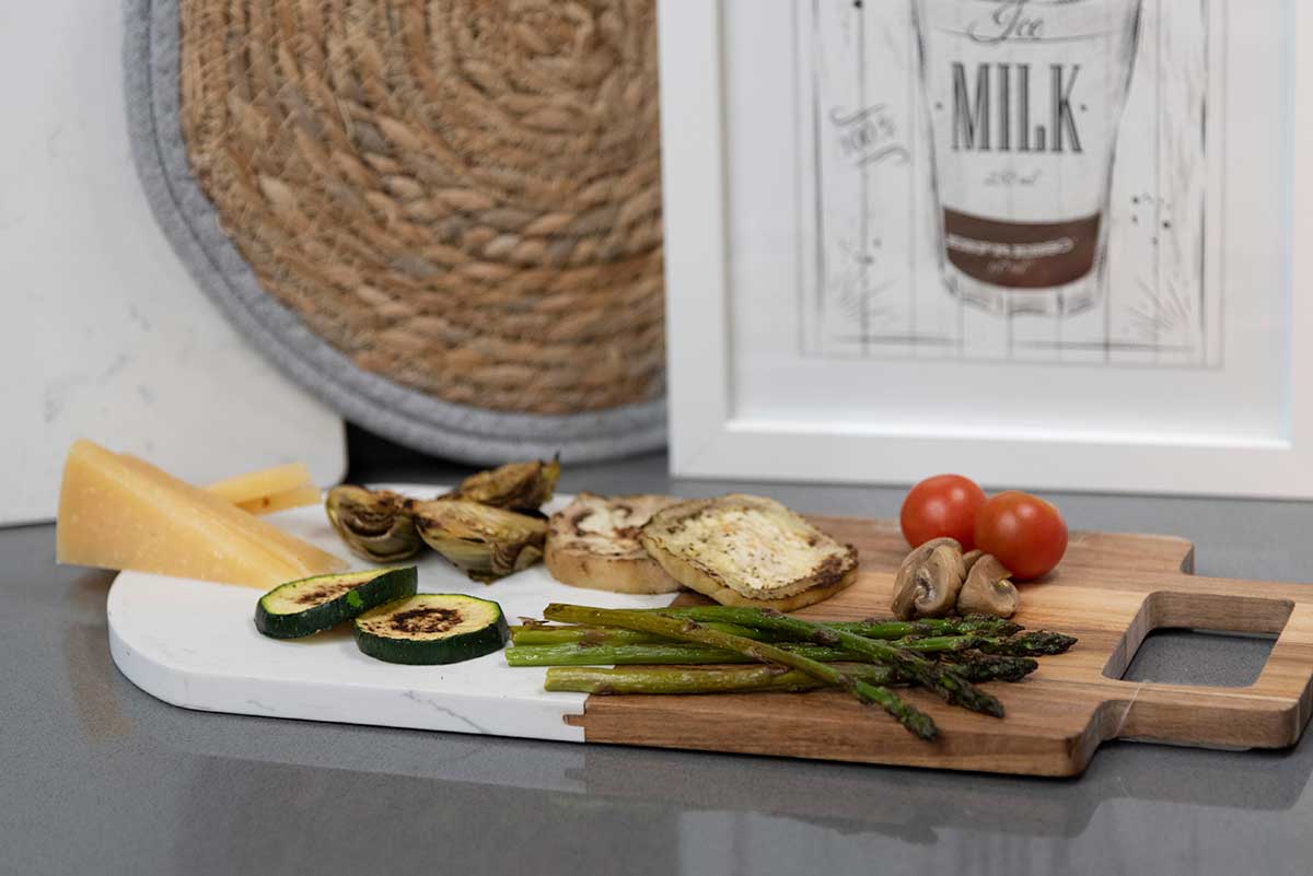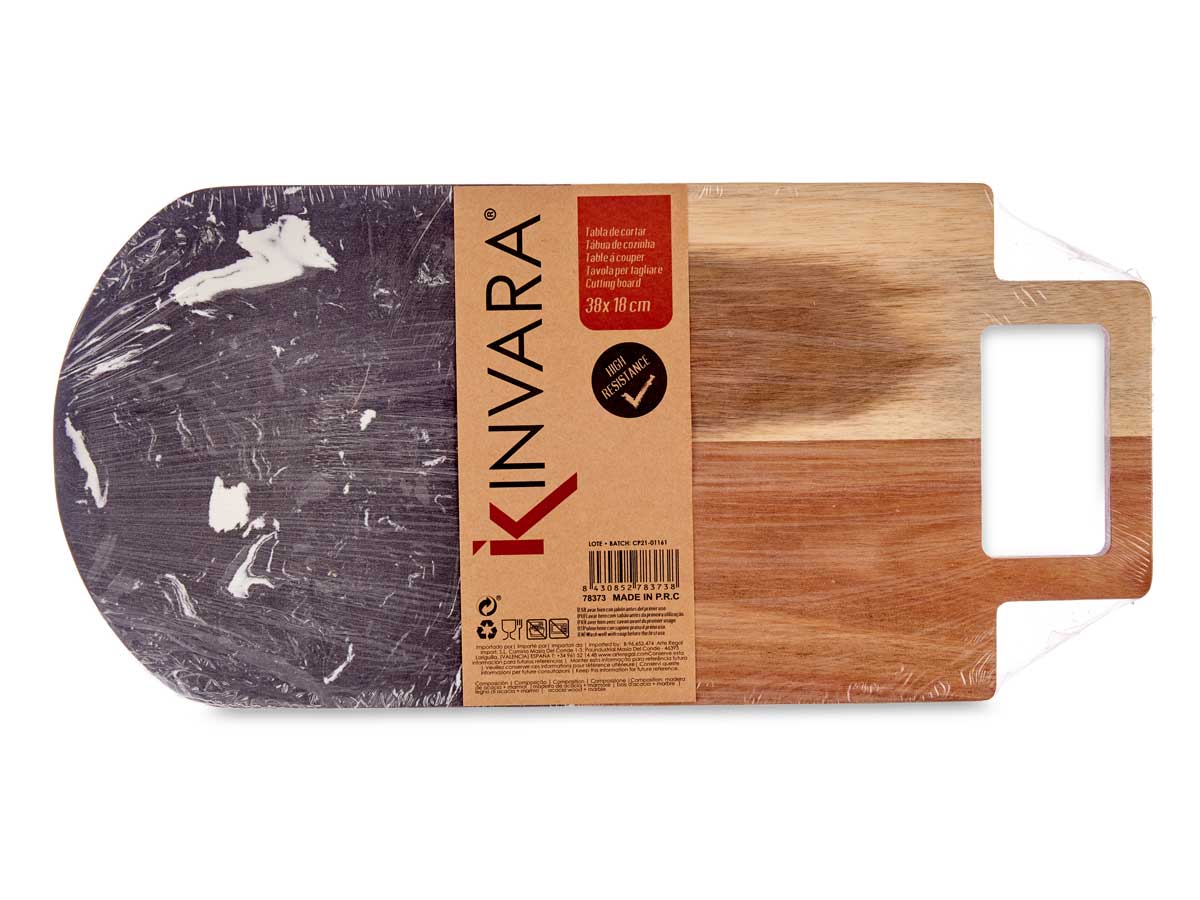 Dieses stilvolle Schneidebrett ist ein perfekter Küchenhelfer. Es verfügt über eine grosse Festigkeit und Härte. Die Hälfte des Schneidebretts besteht aus Akazienholz, die andere Hälfte aus schwarzem Marmor. Der angebrachte Griff vereinfacht das ruhig, wodurch das stilvolle Brett auch ideal zum Servieren verwendet werden kann.