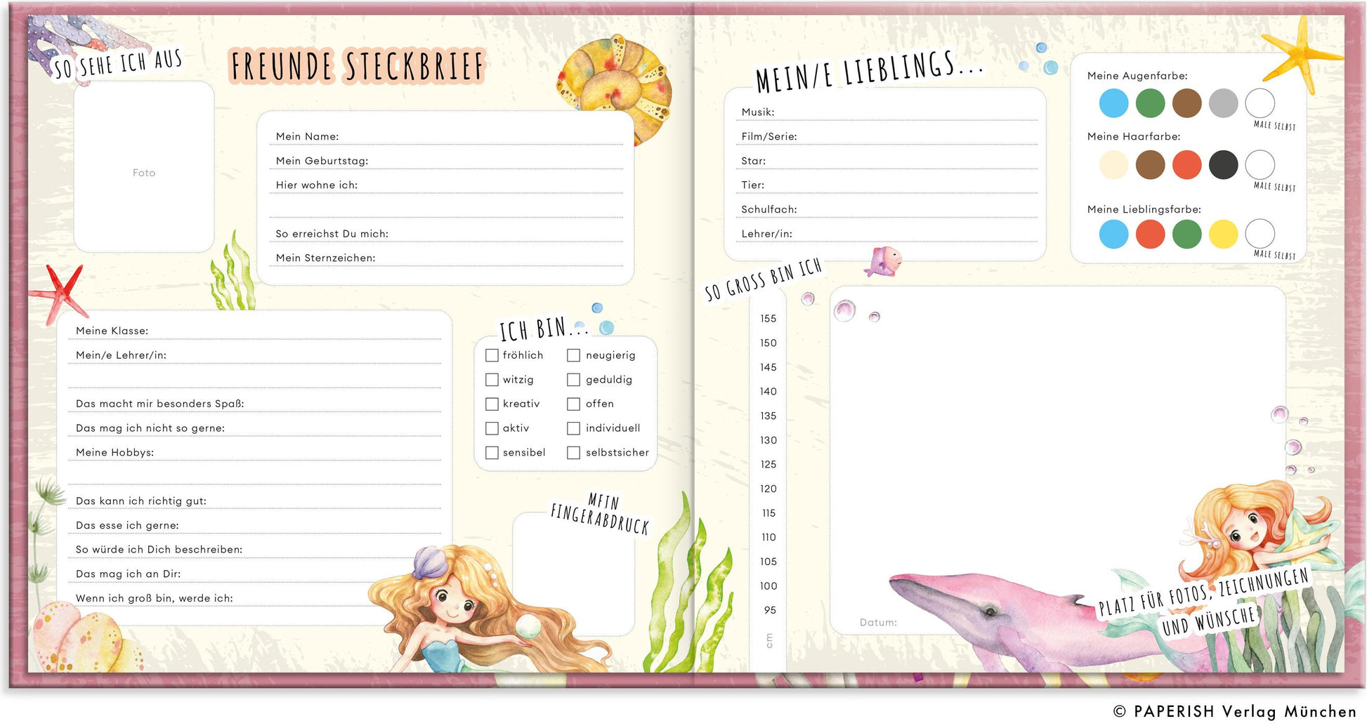 Ein ganz besonderes Freundebuch für Mädchen und ihre ersten Begleiter und Begleiterinnen in der Schulzeit. Fantastische Tiere führen durch ein wundervolles Freundealbum, indem jeder auf besondere Weise eingeladen wird, sich zu verewigen damit die ersten Freundschaften im Leben nicht vergessen werden und später wieder aufleben können. Auf 72 Seiten kann man reichlich Fragen beantworten, ankreuzen, ausmalen und mitmachen um auf natürliche Weise die soziale Bindung und persönliche Kreativität zu fördern. Damit das Freundschaftsbuch auch lange Freude bereitet, sind die Seiten besonders stabil und der Einband des Buches fest und folienkaschiert. Und für das gewisse Etwas gibt es eine wunderschöne Goldfolienprägung auf dem Cover des Buches, so kann jeder erkennen dass es sich um ein einzigartiges, persönliches Erinnerungsstück handelt. Ein besonderes Geschenk für die Zeit in der Schule und die ersten Geburtstage mit Freunden!