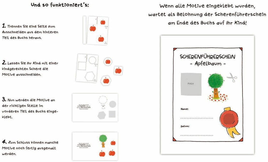 Schüttel den Apfelbaum - Das Ausschneidebuch. Schneiden, kleben, malen für Kinder ab 3 Jahren