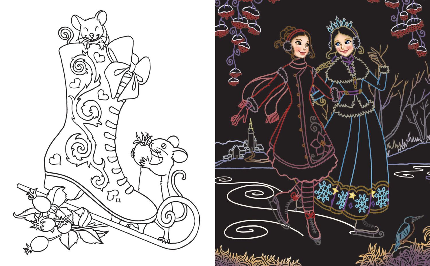 Zu jeder zauberhaften Winterszene gibt es außerdem ein passendes Ausmalbild, das du mit deinen Buntstiften gestalten kannst.