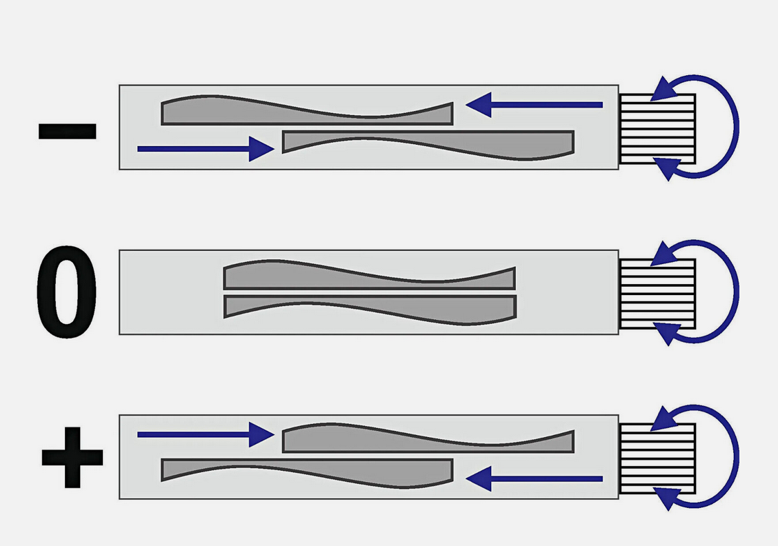 Ausgestattet mit Stellrädchen rechts und links, durch die die Seeplus Korrekturbrille individuell an die jeweilige Sehstärke angepasst wird. Durch Drehen werden die zweigeteilten Brillengläser gegeneinader verschoben (von +3 bis -6 Dioptrien).