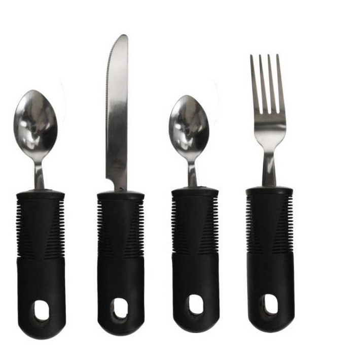 Wellys GI-041880: 4-teiliges Comfort Grips Senior Besteckset Greifen Sie zu! Das spezielle Wellys® Besteck ist speziell für Menschen mit Bewegungseinschränkungen, Rheuma und Arthritis eine echte Erleichterung im Alltag. Dank des extra dicken, ergonomisch geformten Kunststoffgriffs liegt jedes Besteckteil gut und sicher in der Hand. Zusätzlich verhindern die flexiblen Lamellen an den Griffseiten ein Abrutschen der Hand. Das Set besteht aus einer Gabel, einem Messer, einem Esslöffel und einem Teelöffel. Dieses Edelstahlbesteck ist auf einem dicken Gummigriff montiert. Der Griff ist perfekt und die Verwendung Ihres Bestecks erfordert keine Anstrengung mehr. Alle Teile sind spülmaschinenfest. Merkmale: Comfort Grips Besteckset (4 Stück) Enthält eine Gabel, ein Messer, einen Esslöffel und einen Teelöffel. Große Hilfe für ältere und gebrechliche Menschen, für Personen mit eingeschränkter Mobilität oder für Menschen, die an Arthritis und Rheuma leiden Ausgestattet mit extra breiten Anti-Rutsch-Griffen für einen einfachen Griff Mit weichen, flexiblen Rippen an den Seiten, um zu verhindern, dass das Besteck durch die Hand rutscht Lieferumfang: 1 Gabel (19 x 3 x 2 cm), 1 Messer (21 x 3 x 2 cm), 1 Löffel (19 x 3 x 2 cm) und 1 Teelöffel (17,5 x 3 x 2 cm) Alle Teile des Bestecksets sind spülmaschinenfest Material: TPR, Edelstahl (18/0)