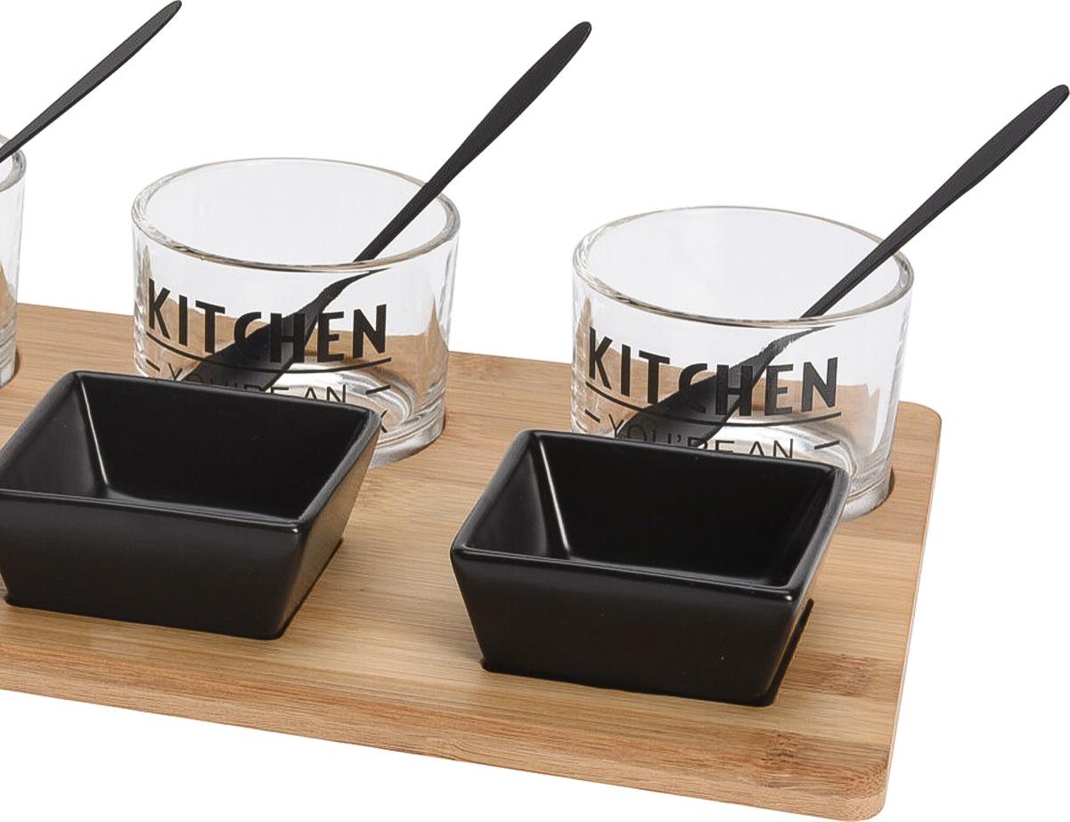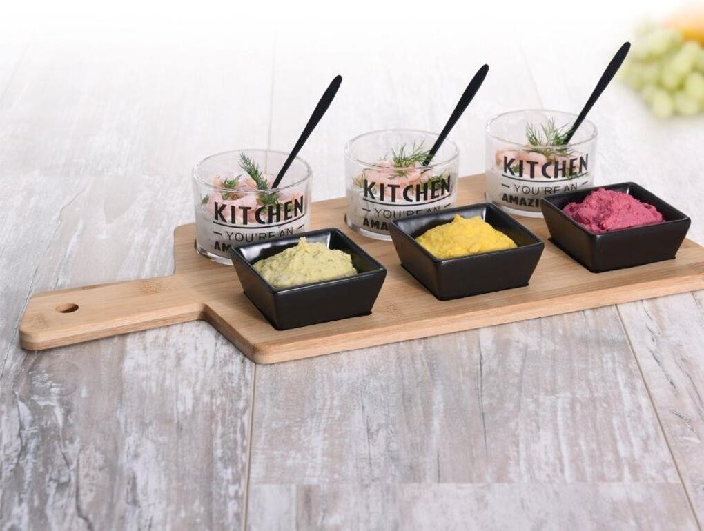 Praktisch servieren: Dank der 3 Löffelchen und des Servierbrettes mit Vertiefungen für die Schälchen, werden Sie zum Servier-Profi bei Ihrem nächsten Anlass. Ob beim Essen mit Freunden, am nächsten Geburtstag oder beim WM-Public Viewing - mit diesem Vorspeise-Set werden Snacks und andere Köstlichkeiten stilvoll präsentiert.