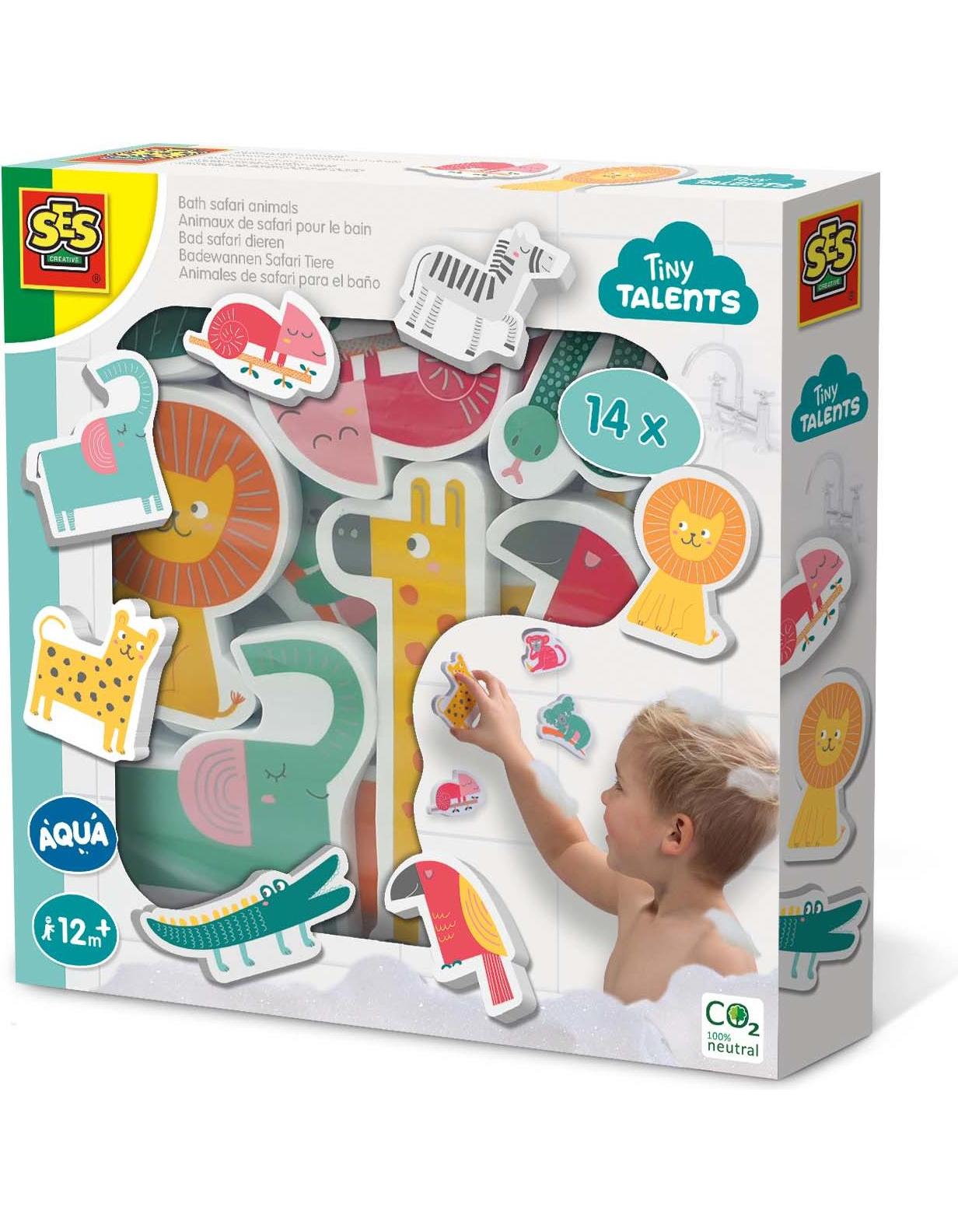 So ein tierischer Spaß in der Badewanne! Gehe auf eine Safari und erfinde deine eigene Safari-Geschichte mit allen 14 Safari-Tieren. Die verschiedenen Schaumstofftiere lassen sich leicht auf nasse Oberflächen kleben, aber auch genauso leicht entfernen.