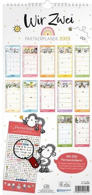 So macht das Planen Spass. Der Partner-Kalender von Sheepworld ist Kult und ein echtes Muss für alle Pärchen. Die liebevollen Illustrationen und die witzigen Aufkleber sorgen für viel gute Laune beim gemeinsamen Pläneschmieden.