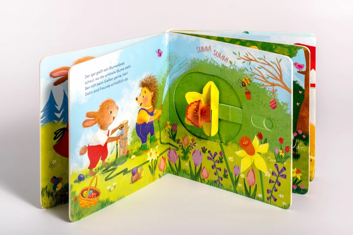 Osterspass mit besonderen Pop-Up-Überraschungen zum Mitmachen und EntdeckenOsterhase Ben darf zum ersten Mal Ostereier verteilen! Doch unterwegs gibt es so viel zu tun und so viel zu bestaunen, dass der kleine Hase gar nicht merkt, dass alle Eier verloren gehen. Oje! Doch zum Glück hat Hase Ben viele Freunde, die ihm helfen, das Osterfest zu retten. Ach, Ostern ist einfach wunderbar!