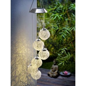 Die elegante und geschmackvolle Solarlampe im modernen Design ist ideal für alle Orte, an denen Sie Licht benötigen – sei es im Garten, auf der Terrasse oder auf dem Balkon. Keine Installation, kein Stromanschluss erforderlich – hängen Sie sie einfach an einem beliebigen Ort auf, wo sich das Solarpanel tagsüber auflädt und die Lampe abends mit einem angenehmen, warmen Licht erstrahlt. Die Kugeln sind aus Silbermetall gefertigt und die Enden sind aus Edelstahl, mit integriertem Solarpanel und Ein-/Aus-Schalter. Die Leuchtkugeln verwenden warmweisse LEDs. Zusätzliche Abmessungen: Ø der Kugeln ca. 7 cm.