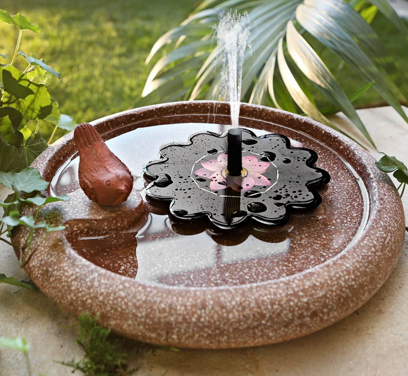 Ein Springbrunnen zaubert in jeden Gartenteich, Swimmingpool oder auch Vogelfutterstelle eine romantische Atmosphäre.