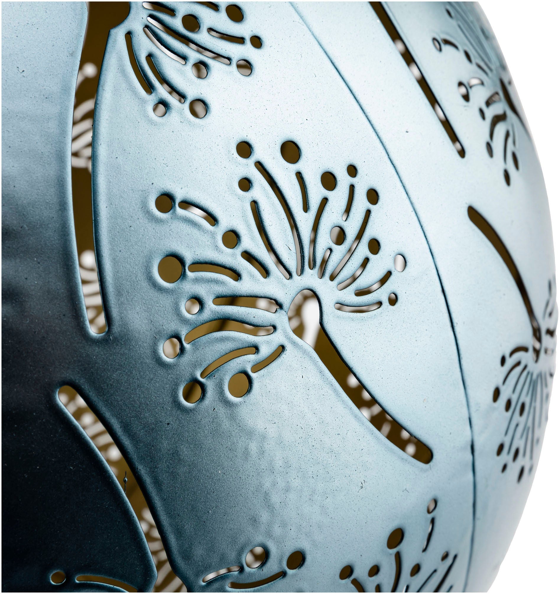 Setzen Sie mit Licht ganz besondere Akzente in Ihrem grünen Paradies. Auf Terrasse und Balkon, im Beet oder Rasen: Diese Lichterkugel glänzt mit ihrem metallischen Rauchblau-Finish und dem raffinierten Durchbruchmuster. Zarte Pusteblumen werden von innen durch das Licht einer LED stimmungsvoll in Szene gesetzt.